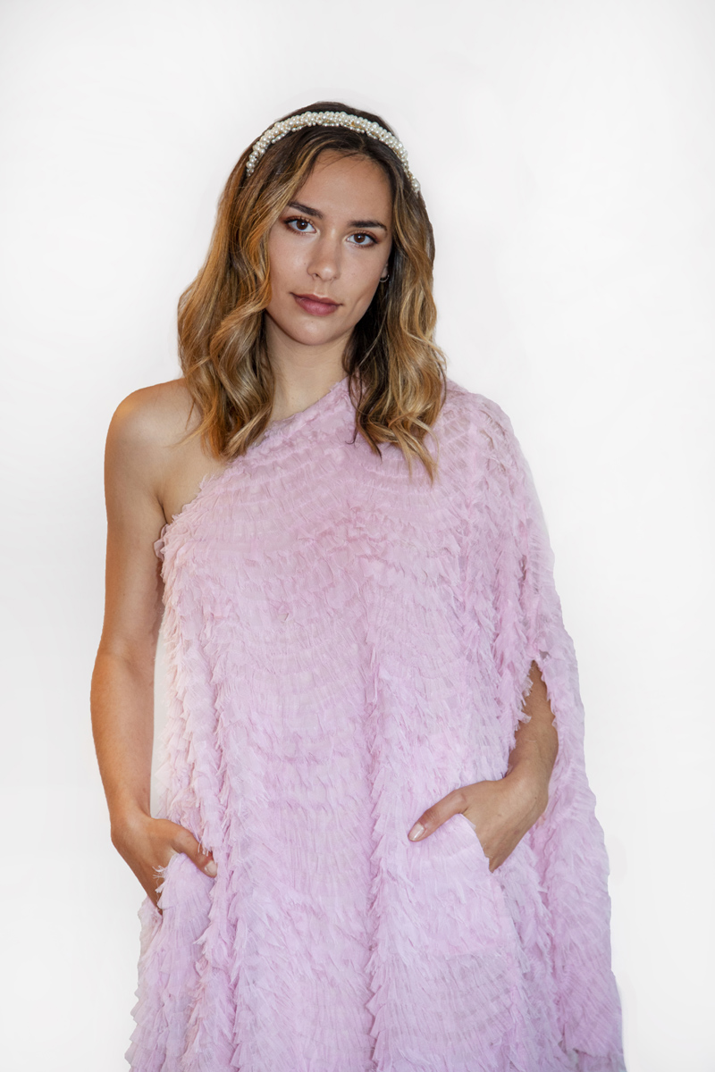 Asymmetric thousand-leaf dress with side pockets. The perfect guest.