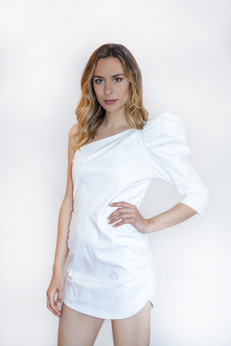 Vestido en cuero ligero blanco, una sola manga.